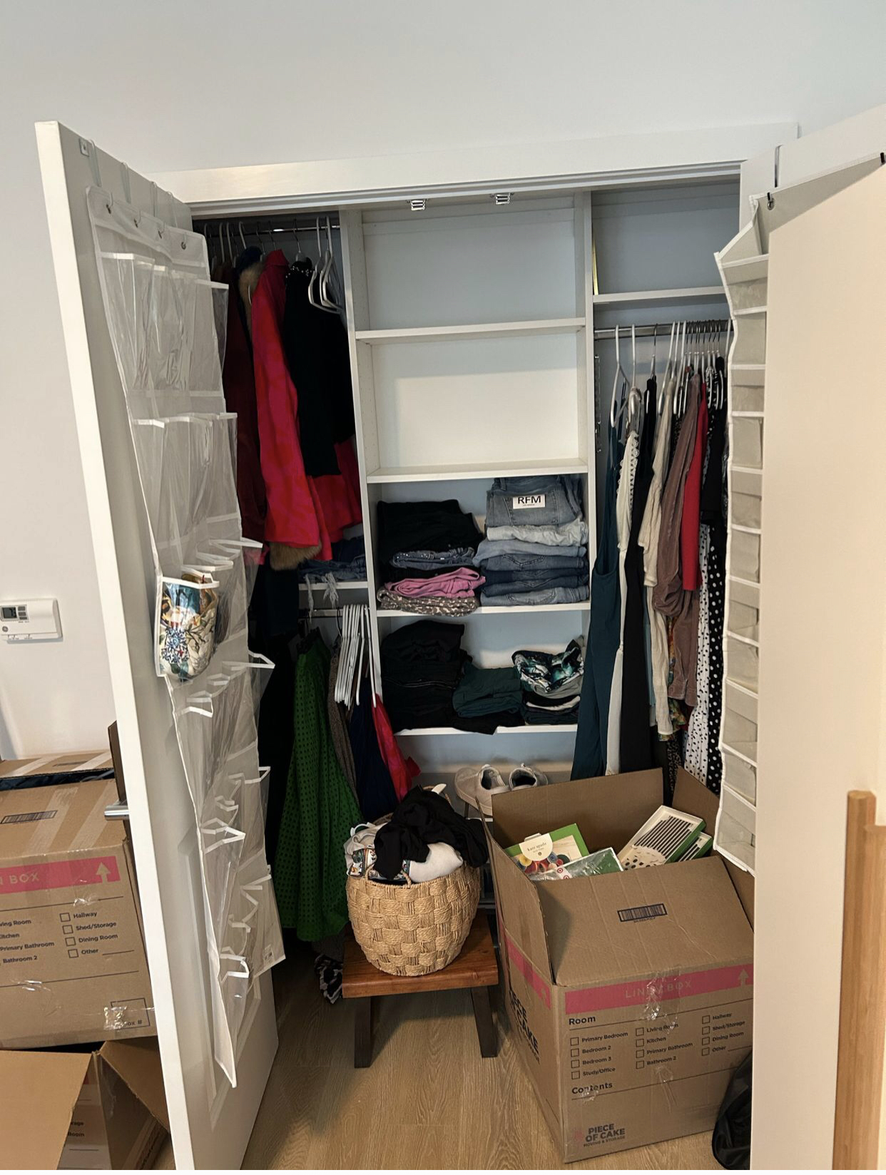 Client was overwhelmed trying to focus on work. Did not have the bandwith to figure out how to make all her clothes and things fit into a new space.
